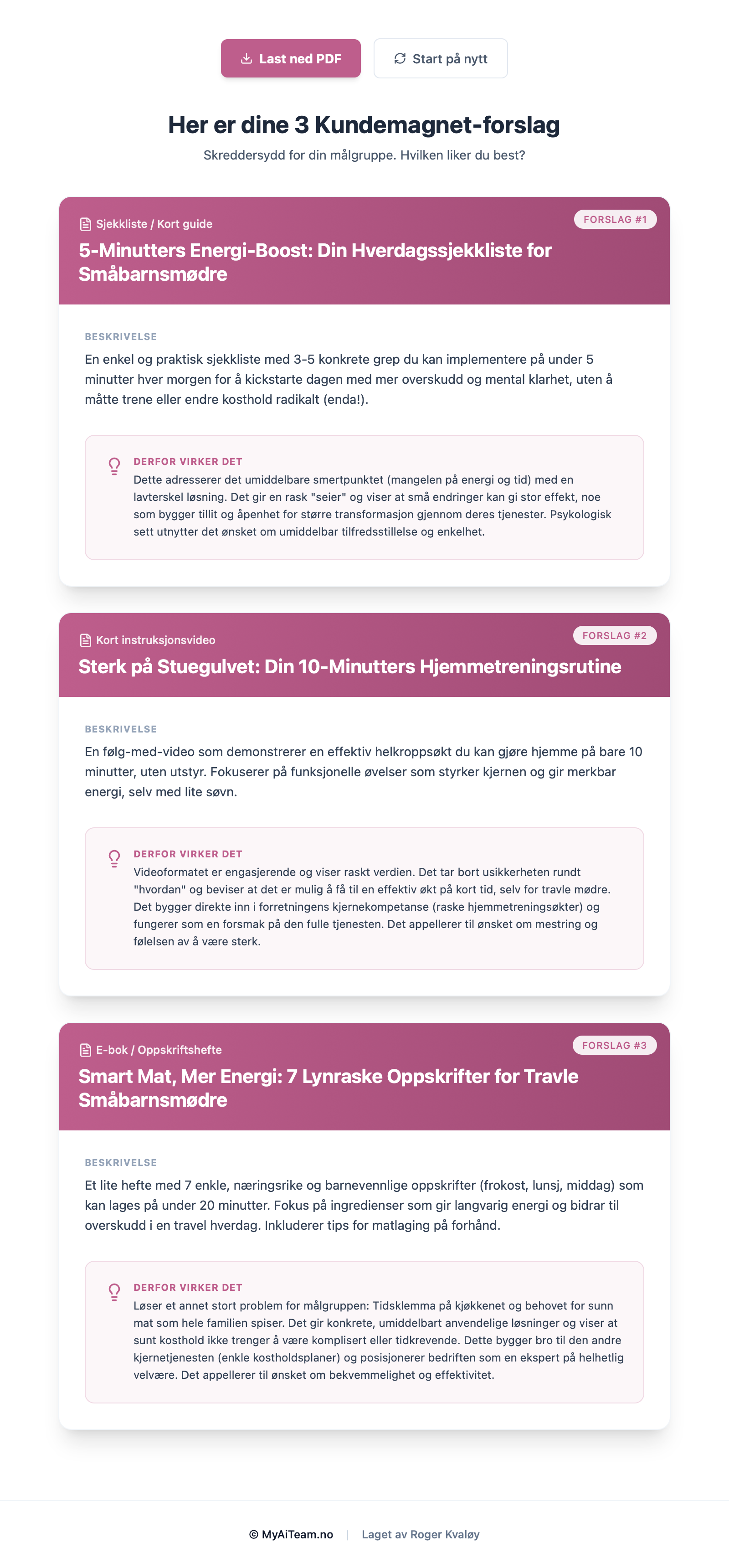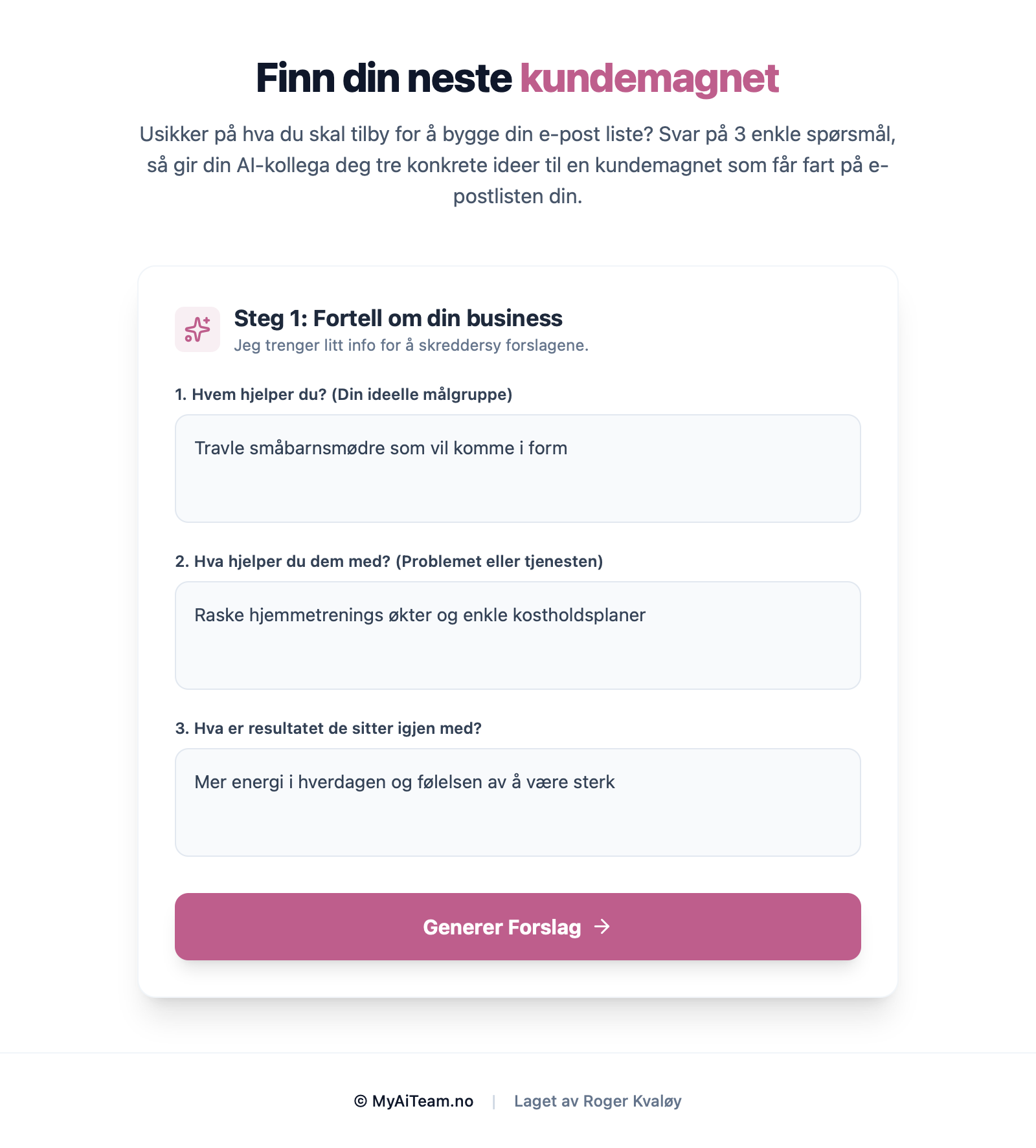Usikker på hva du skal tilby for å bygge din e-post liste? Svar på 3 enkle spørsmål, så gir din AI-kollega deg tre konkrete ideer til en kundemagnet som får fart på e-postlisten din.