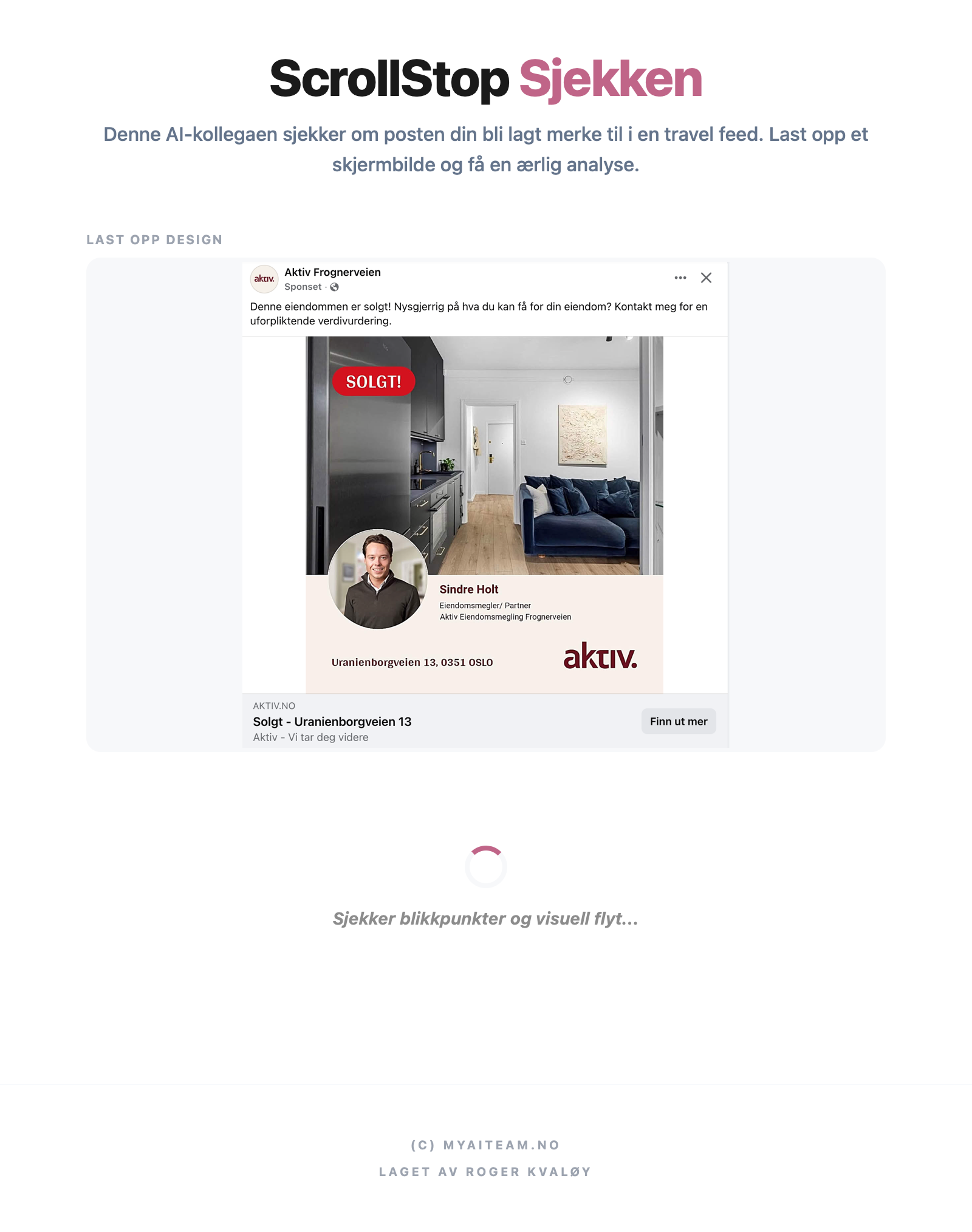Denne AI-kollegaen sjekker om posten din bli lagt merke til i en travel feed. Last opp et skjermbilde og få en ærlig analyse.