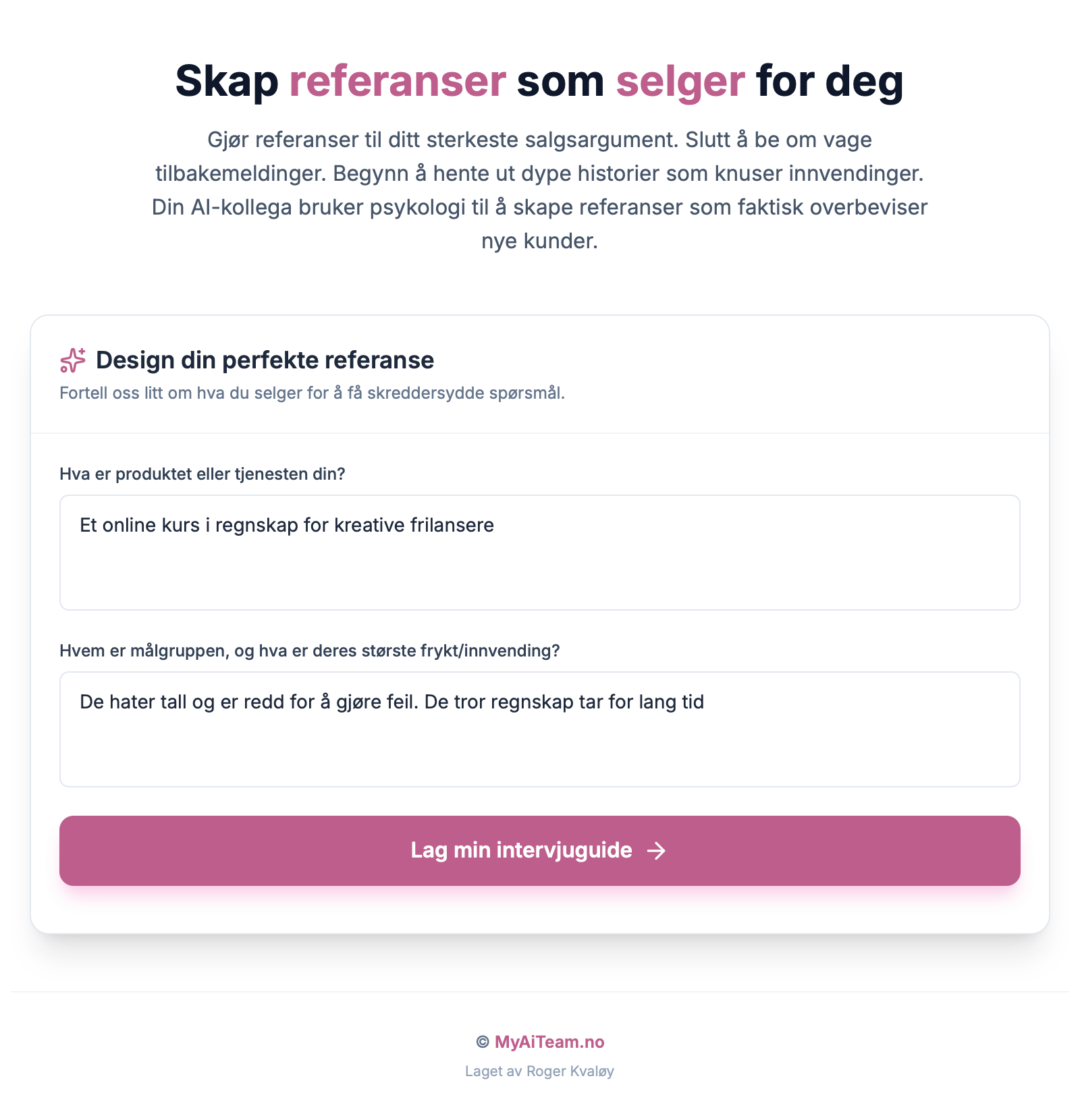 Gjør referanser til ditt sterkeste salgsargument Slutt å be om vage tilbakemeldinger. Begynn å hente ut dype historier som knuser innvendinger. Din AI-kollega bruker psykologi til å skape referanser som faktisk overbeviser nye kunder.