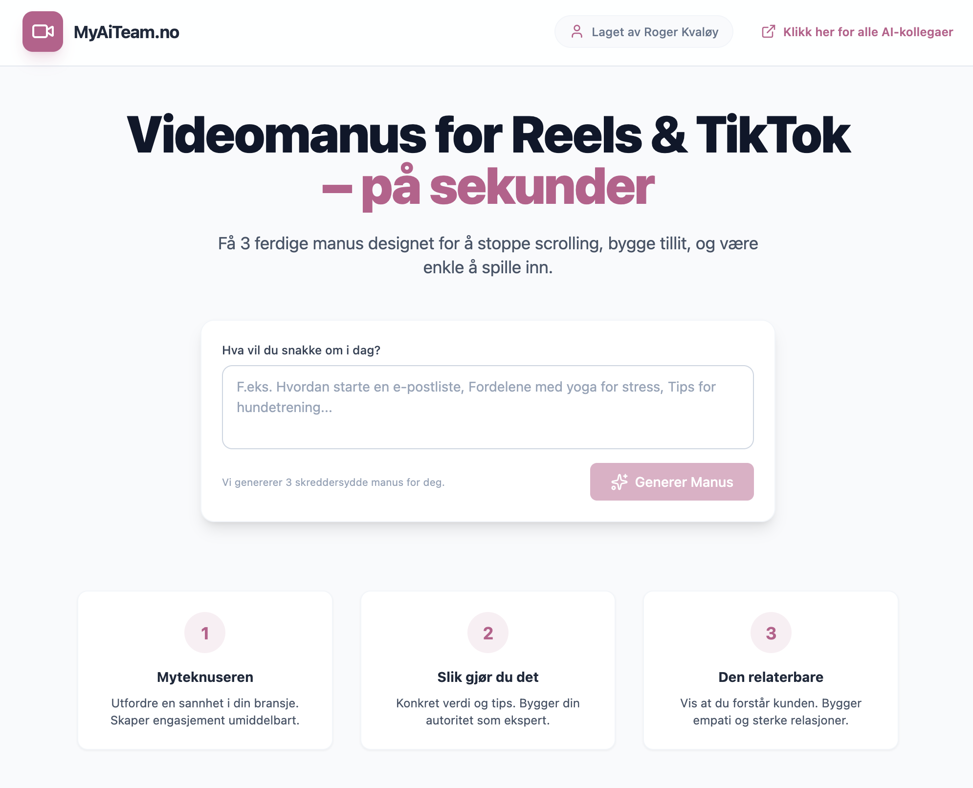 Få tilgang til 3 ferdigskrevne manus som er skreddersydd for å fange oppmerksomheten umiddelbart, bygge dyp tillit hos seerne dine, og som er så enkle at du kan spille dem inn på 1-2-3. Sett meg i gang