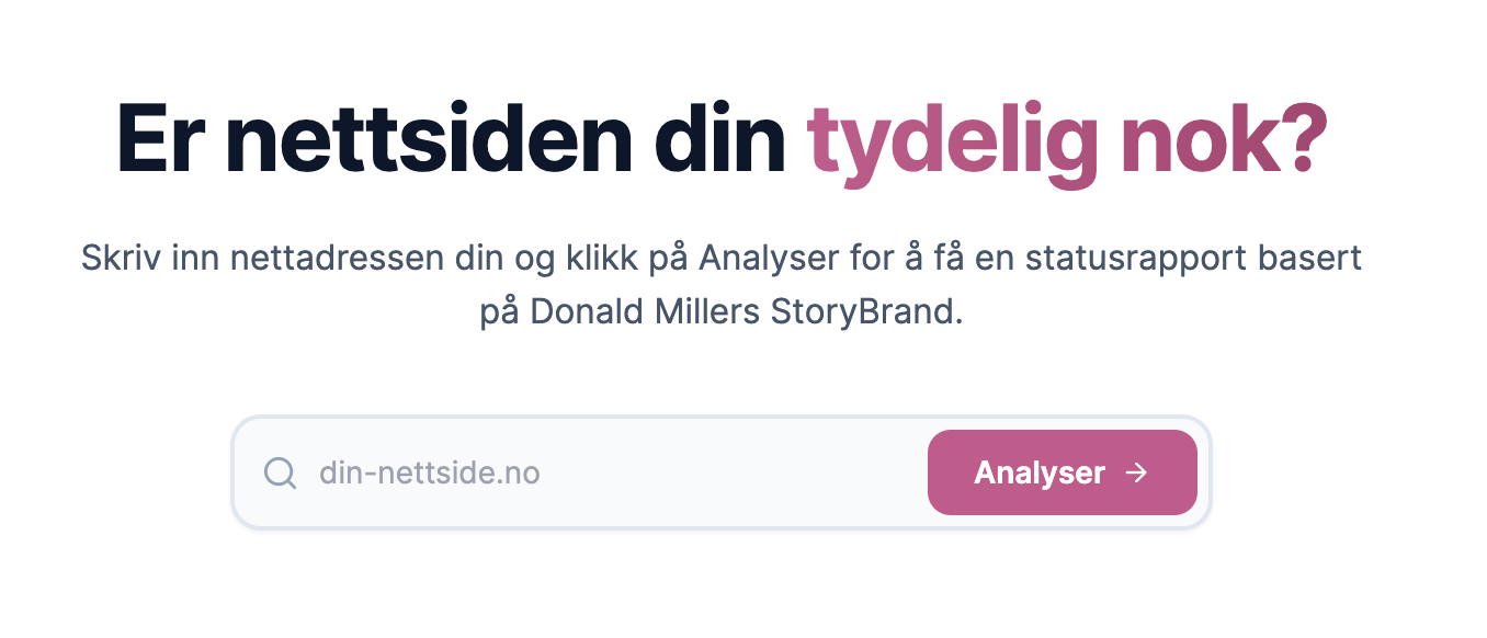 Sjekk nettsiden minIkke mist kunder på grunn av utydelig kommunikasjon. Få en full tilstandsanalyse og se nøyaktig hva du må fikse med vår StoryBrand-sjekk.